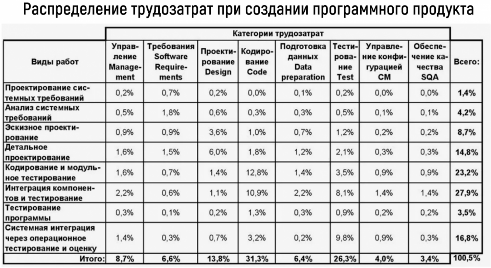 И в этой команде нужны не только программисты. Как говорит многолетний опыт индустрии, доля программирования в создании программного продукта составляет от силы четверть всех трудозатрат.
