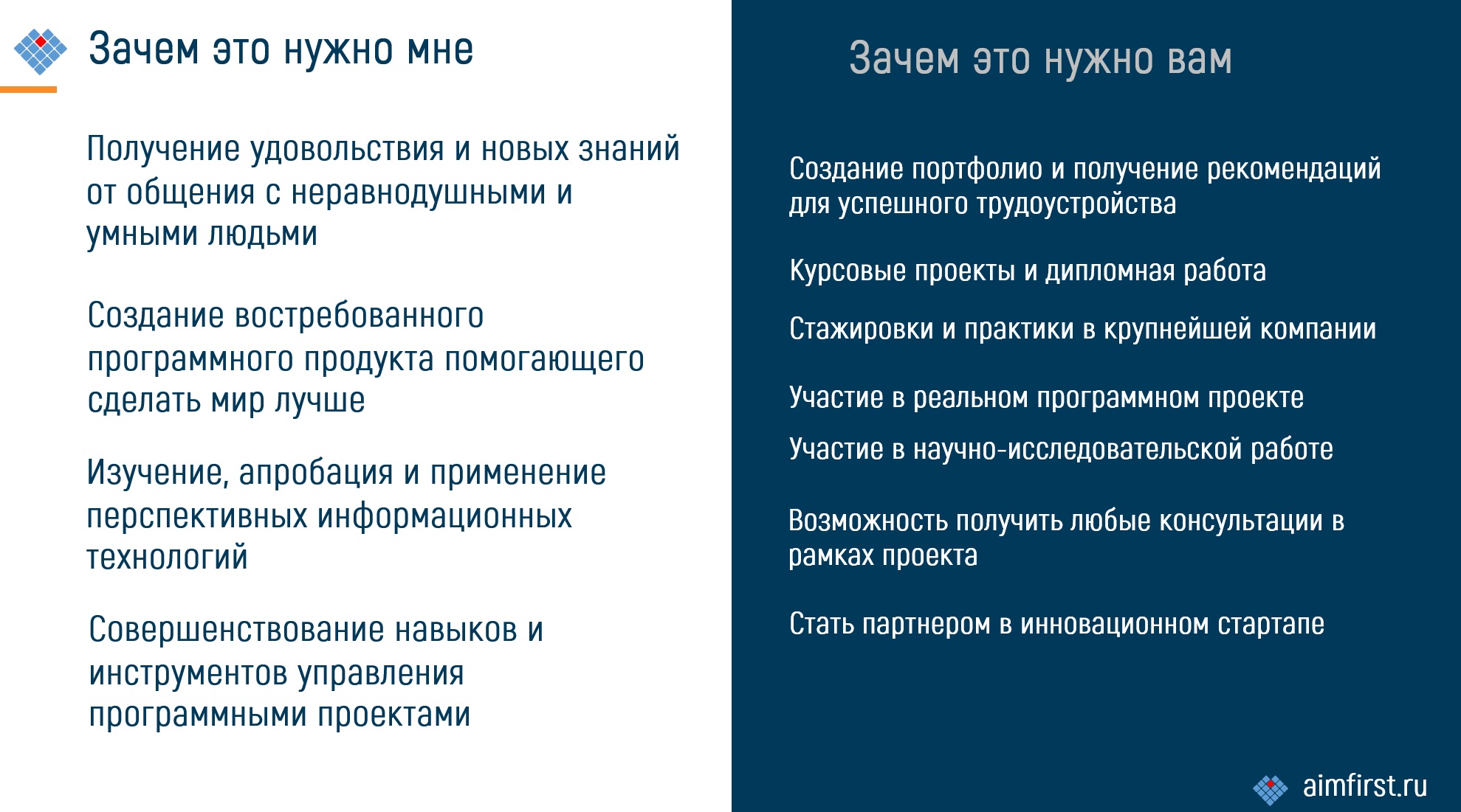 Но в принципе, я рассматриваю в качестве партнеров в этом проекте не только студентов, но илюбых желающих. Например, тех кто хочет освоить новые для себя технологии. Освоить их можно, только участвуя в реальном проекте. Все это должна делать команда. Команда, которой я управляю по тем же самым правилам, что и своей проектной группой в компанииЛАНИТ. Эти правила не являются секретом и находятся воткрытом доступе. А что я могу им предложить? Только совместную командную работу над проектом. Свои планы я не скрываю.